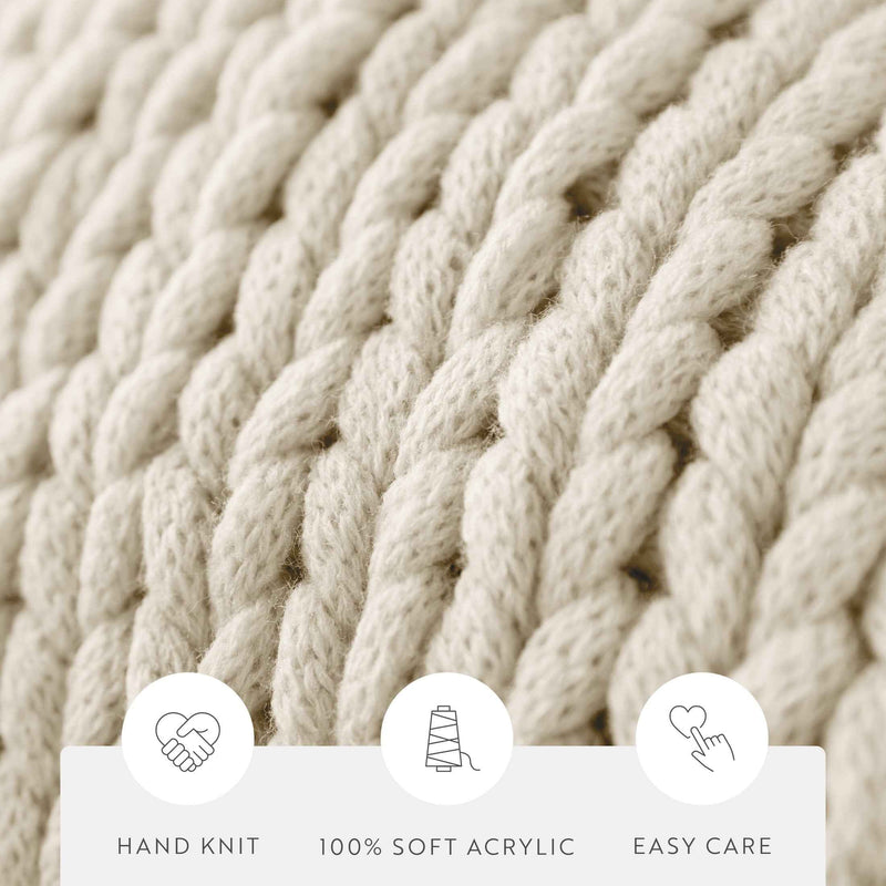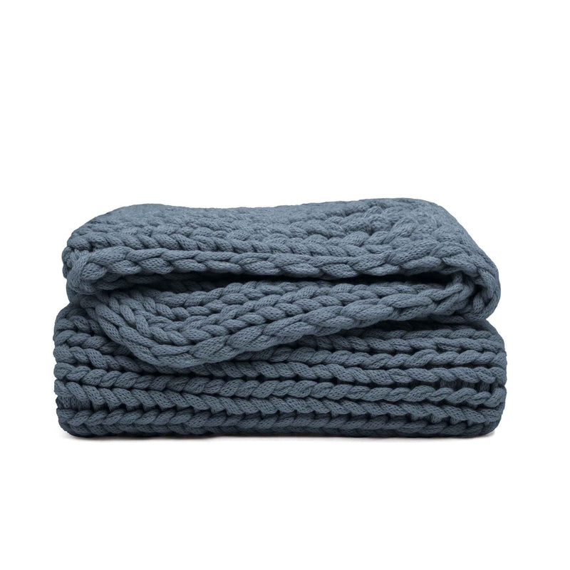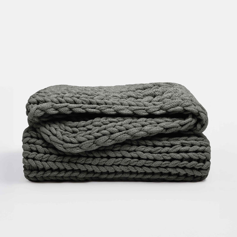 Comfort Canopy™ Chunky Hand-Knit Throw Blanket – Eucalyptus Green (Soft Acrylic) -