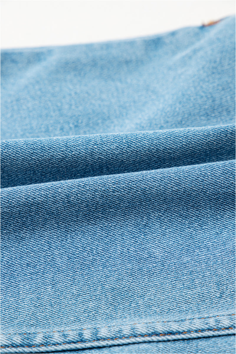Dusk Blue Acid Washed Bowknot Details High Waist Denim Skirt  -