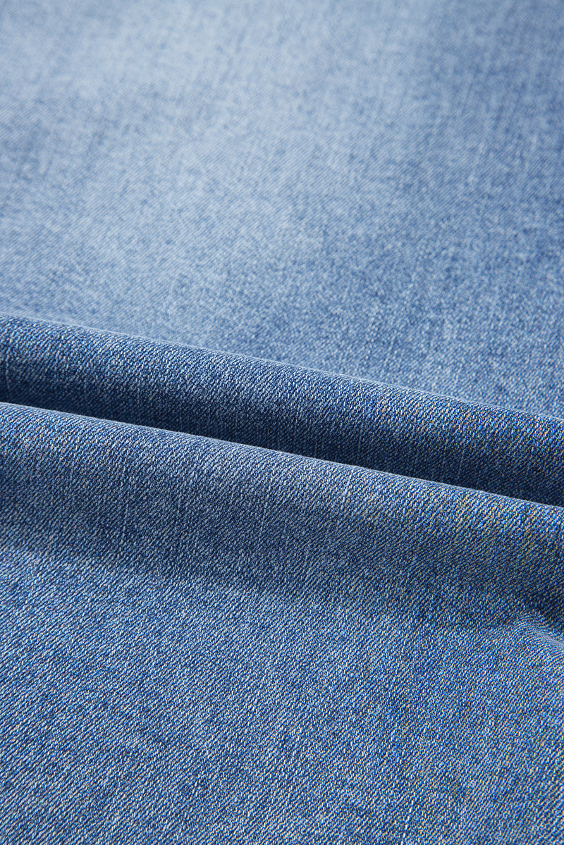 Myosotis Irregular Distressed Hem Denim Midi Skirt  -