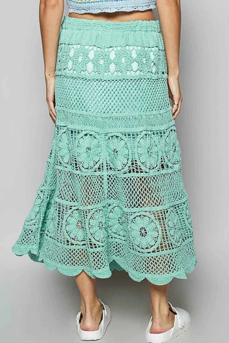 Oatmeal Embroidered Mesh Overlay Flowy Long Skirt  -