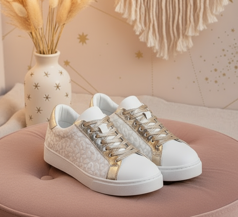 Gold Glitter Star Patchwork PU Leather Lace-up Sneakers  -