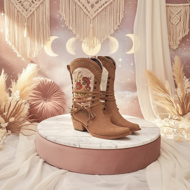Vintage Floral Embroidered Western Cowgirl Boots  -